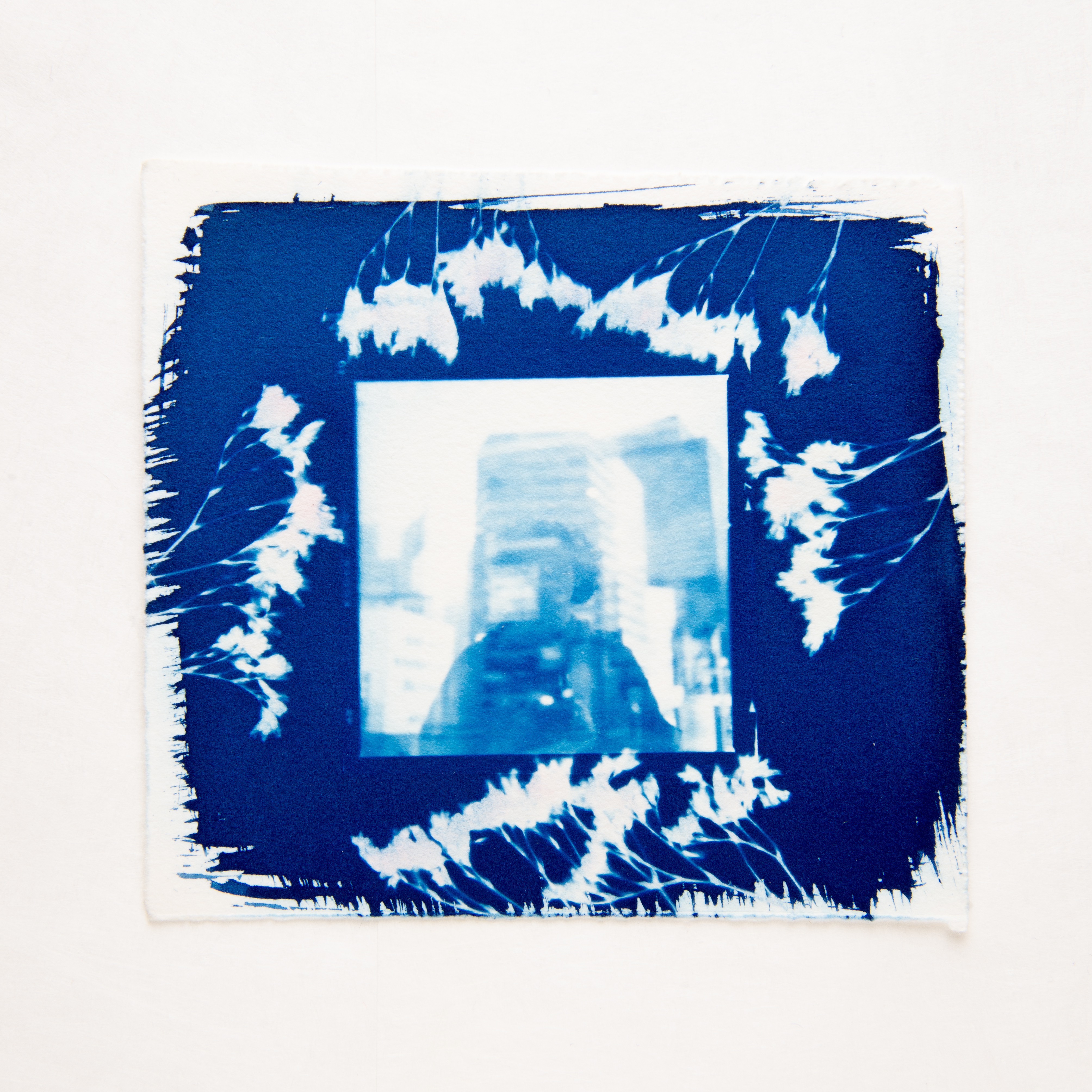 a collection of cyanotype prints made with an assortment of old negatives (both 35mm and 120mm), plants, and jewelry.